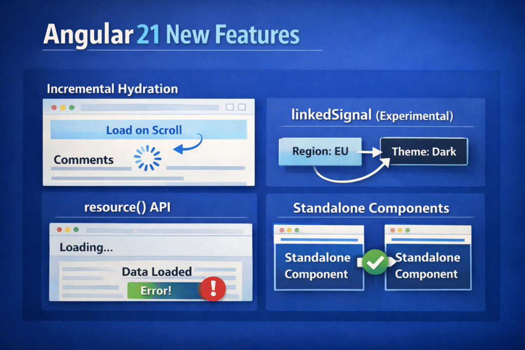 Angular continues to evolve as one of the most powerful frameworks for building modern web applications. The release of Angular 21 introduces major improvements such as zoneless change detection, signal-based forms, accessibility-focused components, faster testing with Vitest, and AI-assisted development tools.